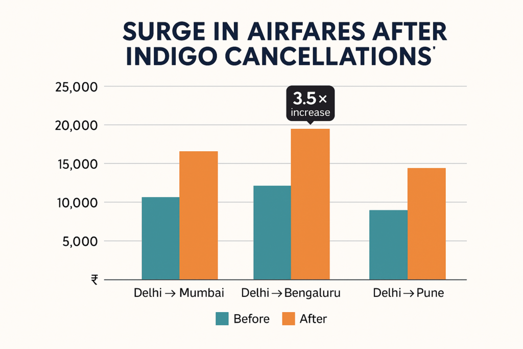 Yes. With IndiGo reducing capacity, demand shifted to other airlines. This resulted in a sharp spike in fares on high-traffic routes such as Delhi to Mumbai and Delhi to Bengaluru. Travellers reported paying several times the usual price.